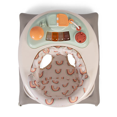 Featuring an electronic activity tray that has been designed to engage and entertain little ones with light up sounds and flashing lights. The play tray fully detaches for play time away or allows other play toys with the walker.