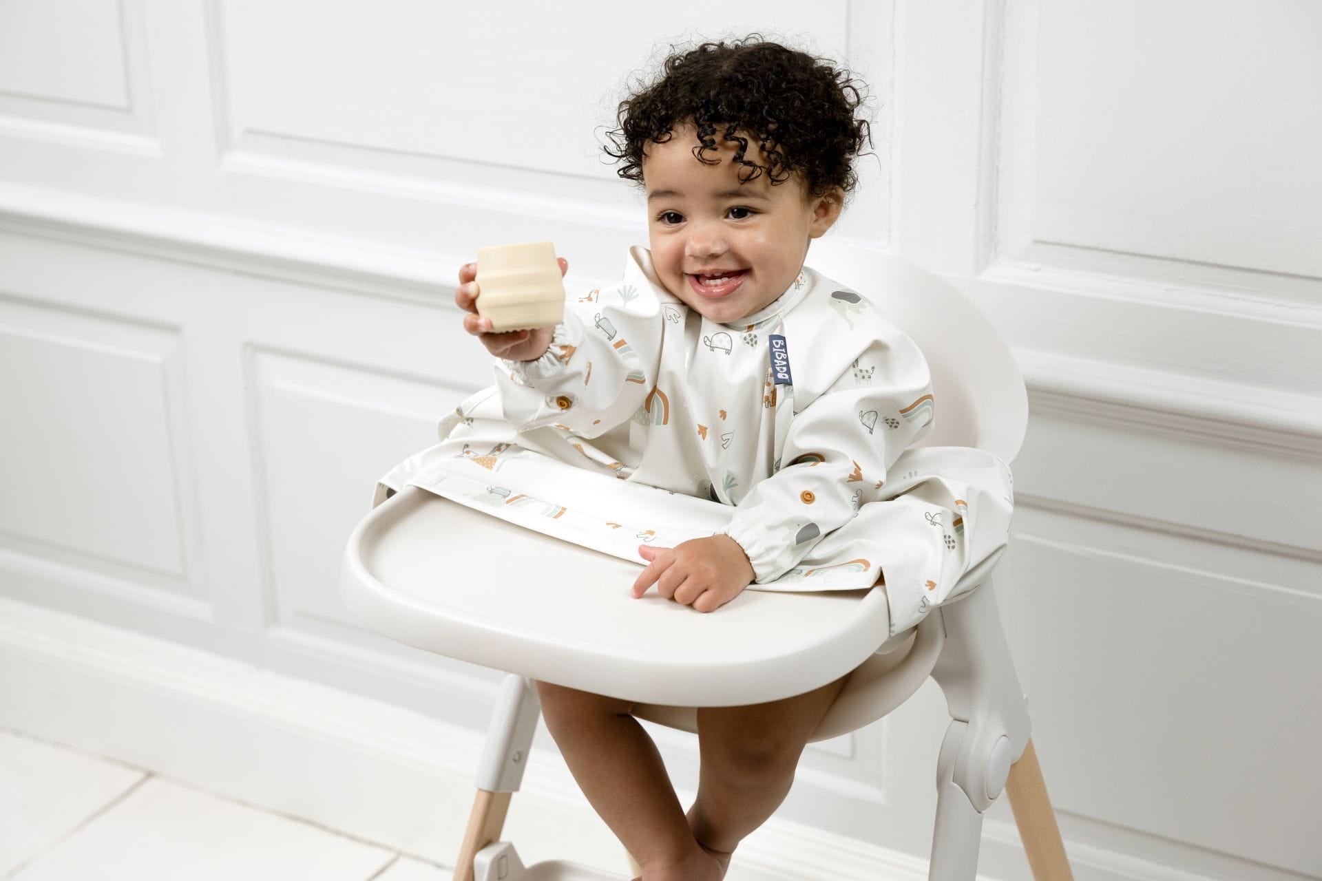 The No.1 Bibado Coverall Weaning Bib is loved by babies, parents, and experts. It supports learning and discovery at mealtimes by keeping weaning babies completely covered, clean, and dry. Crafted from premium, super-soft fabric, durable, and built to last, the Bibado Coverall Bib attaches to highchairs and withstands the messiest of meals. It helps nurture adventurous, independent eaters and protects clothes and highchair seats.