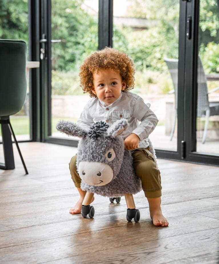 Full of character and charm, Bojangles is our adorable donkey who makes early adventures unforgettable. With his big perky ears, rattly tail and friendly smile, he’s one of the most-loved ride on toys for 1 year olds, bringing laughter, balance and confidence to little riders everywhere.