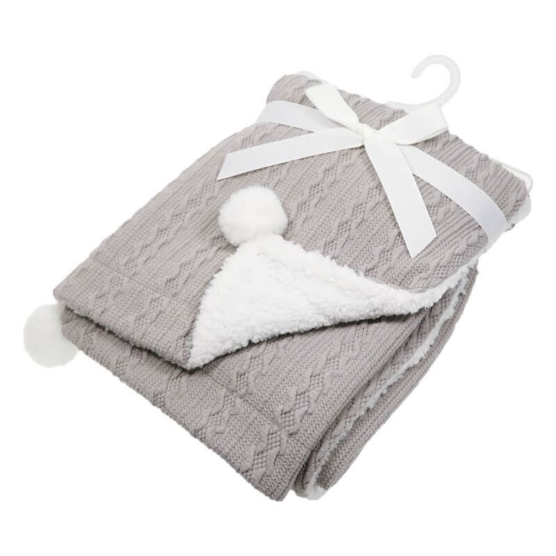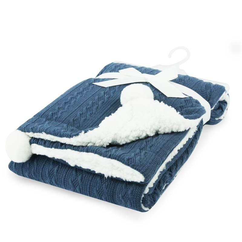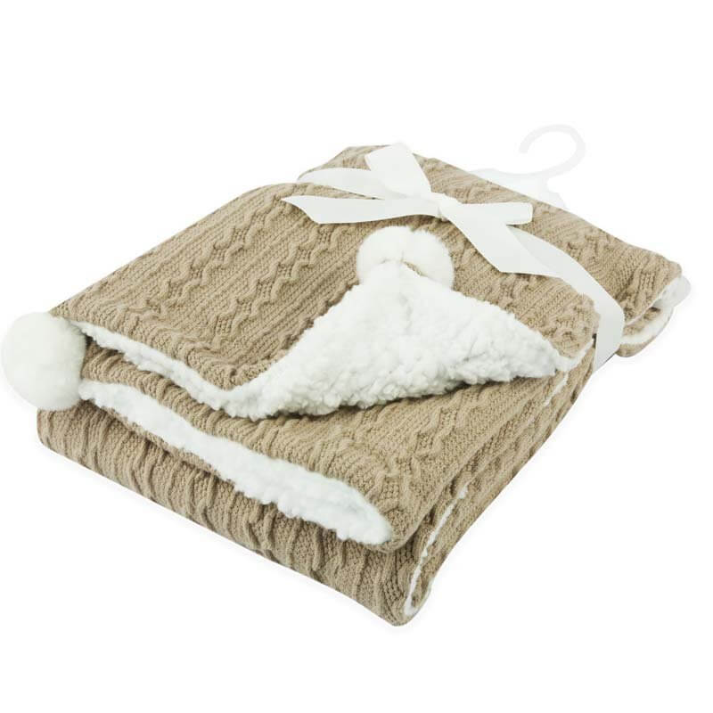 Cable Knit Blanket with Pom Pom