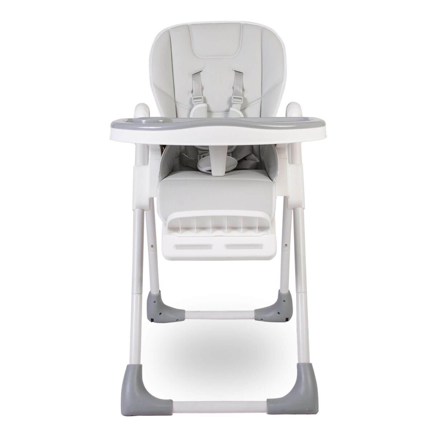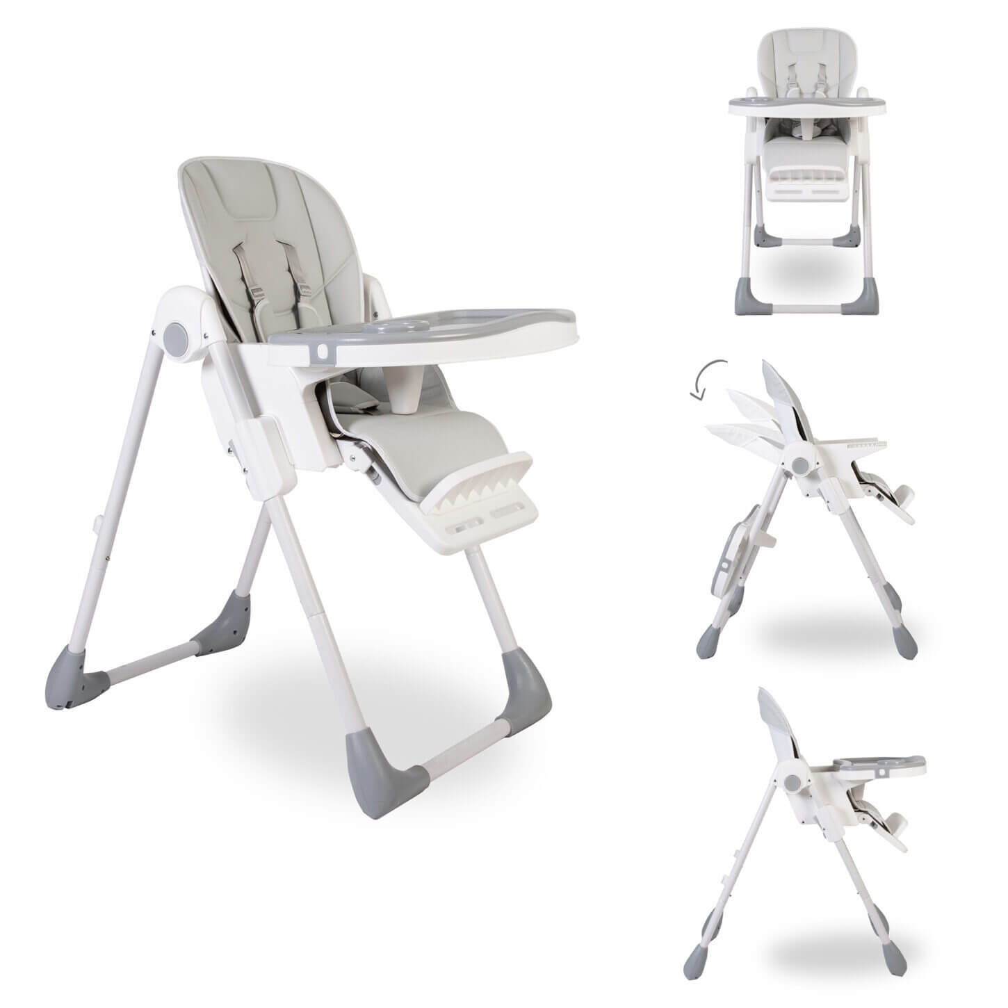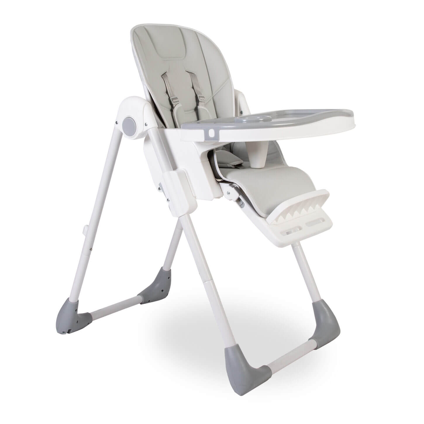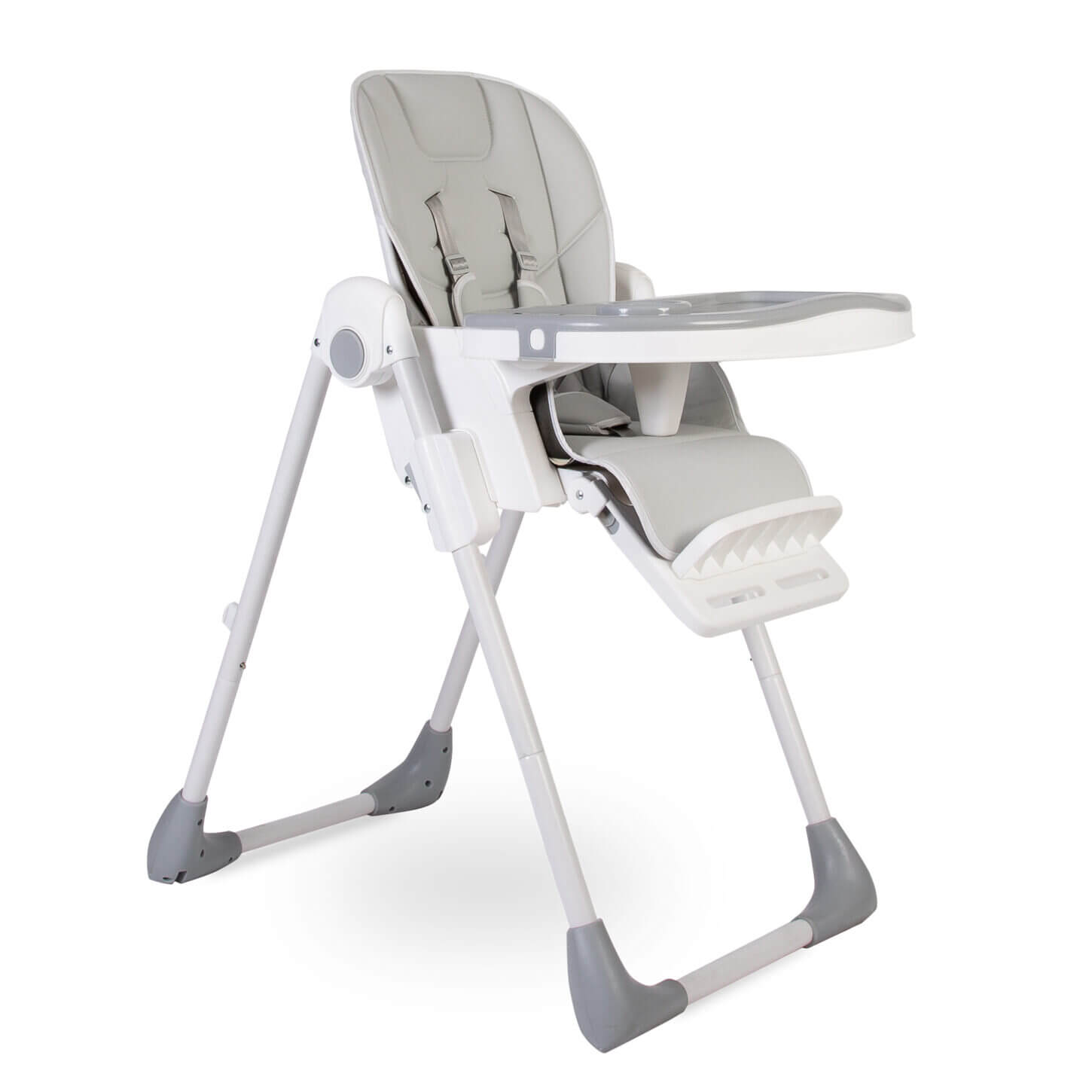 - Luxury High Lo highchair finished in a soft grey and white modern design