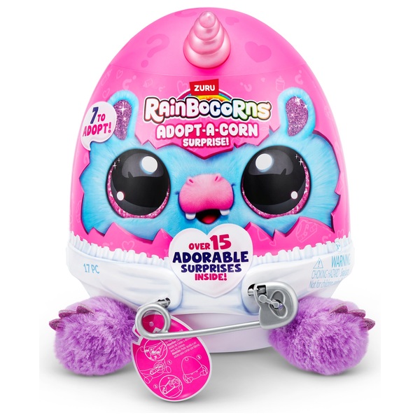 Adopt a brand new bestie with the Rainbocorns Adopt-A-Corn Surprise Egg! There are 7 Adopt-A-Corns to adopt (each sold separately), with each egg containing over 15 adorable surprises inside!