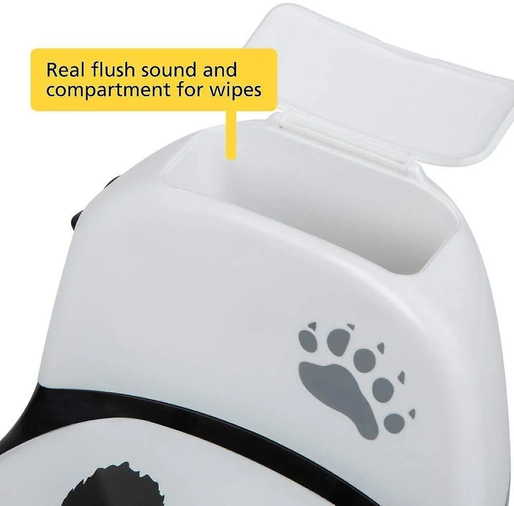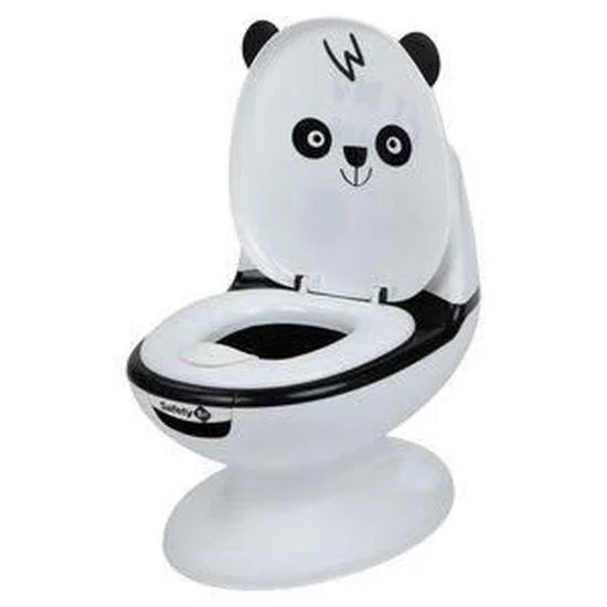 Meet the cutest baby potty you’ve ever seen. Safety 1st’s Mini Size Toilet encourages your little one to use the potty, because it looks just like the toilet of their parents The baby toilet has an adorable panda design, makes a real flush sound and includes a compartment to fit baby wipes or real toilet paper. The toilet potty is suitable for use from 18 months.This potty training seat is easy to use and easy to clean. Suitable for both boys and girls, the cute potty has a deflector for boys for hygienic use. The removable bowl makes the kids potty easy to empty, making it super easy to keep Safety 1st Mini Size Toilet clean at all times.