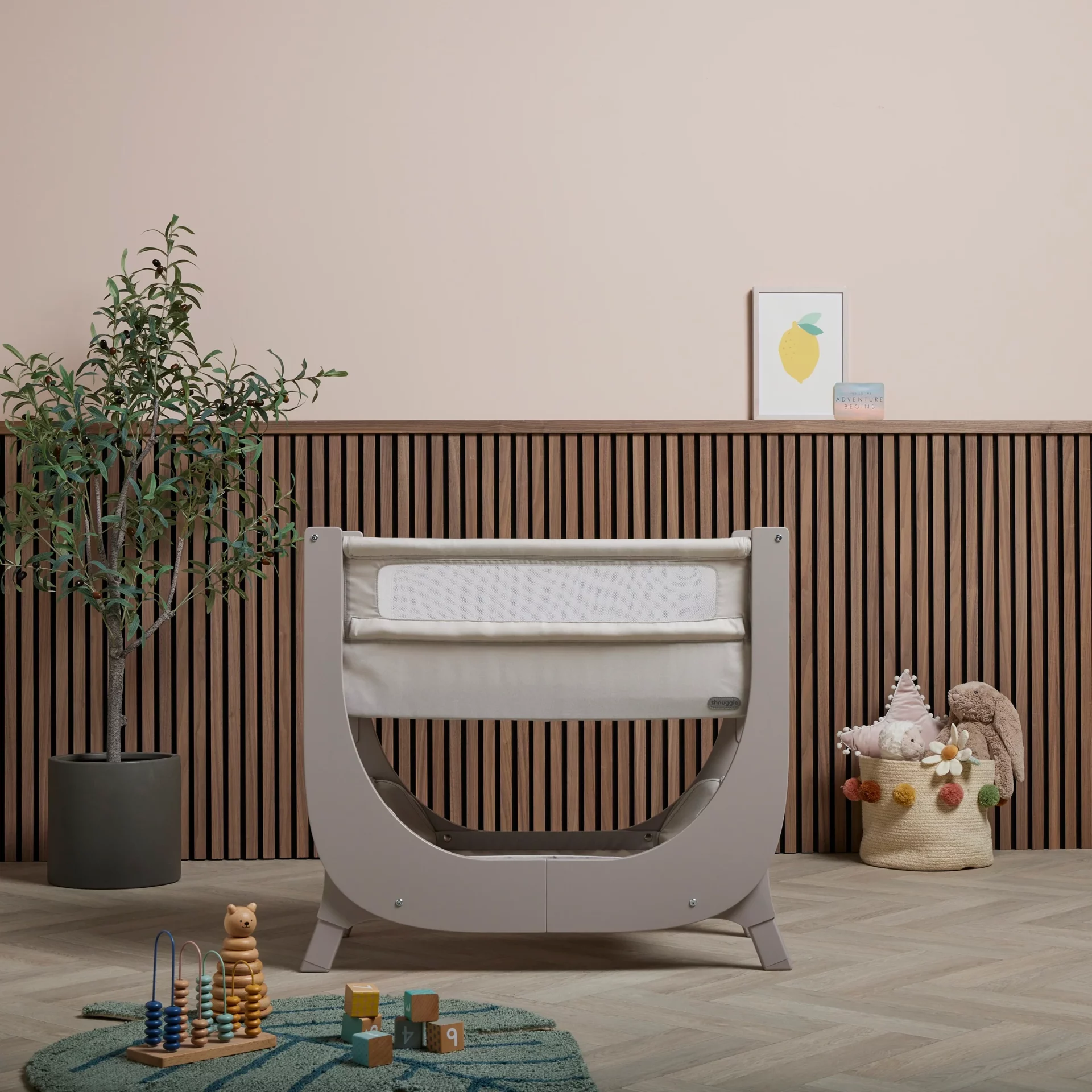 Crib fully tested and compliant with the latest safety standard BS EN 1130:2019.